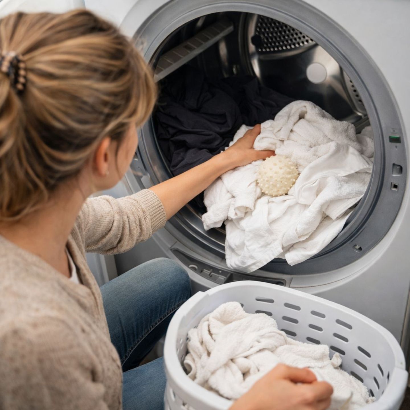 Tip: gebruik een drogerbal om statische lading en pluisvorming te verminderen.